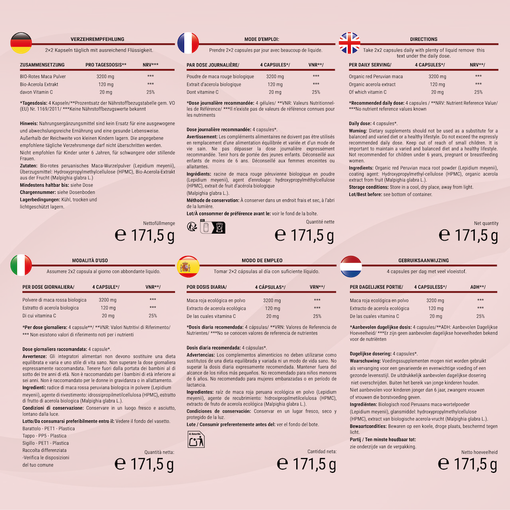 Acerola is a natural, organic source of Vitamin C, which contributes to normal immune function, helps reduce tiredness, and improves the absorption of nutrients like maca.