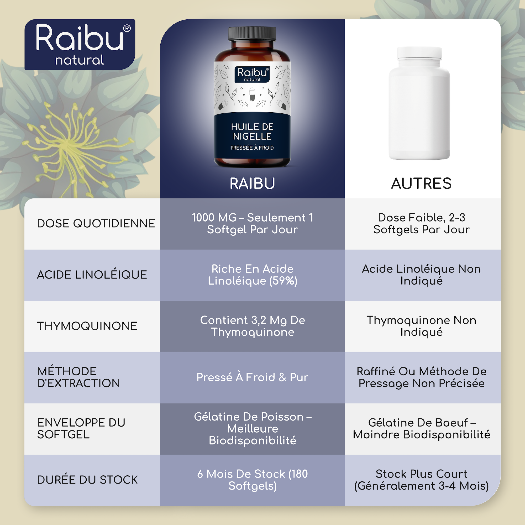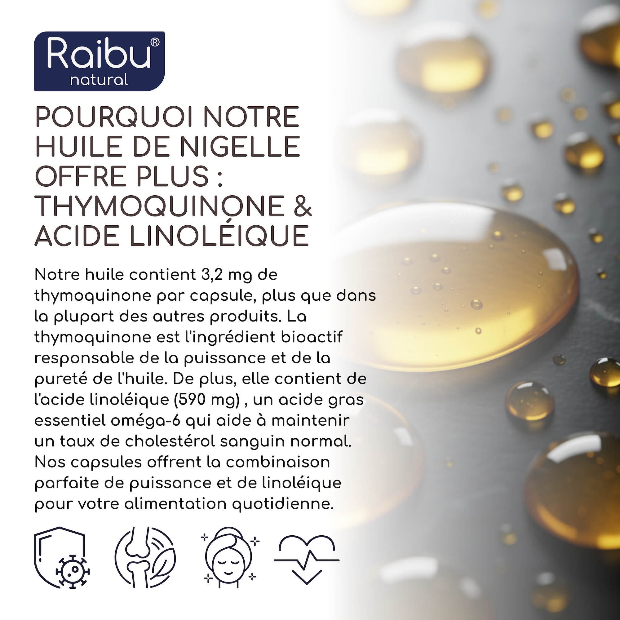 - Rich in thymoquinone and linoleic acid
