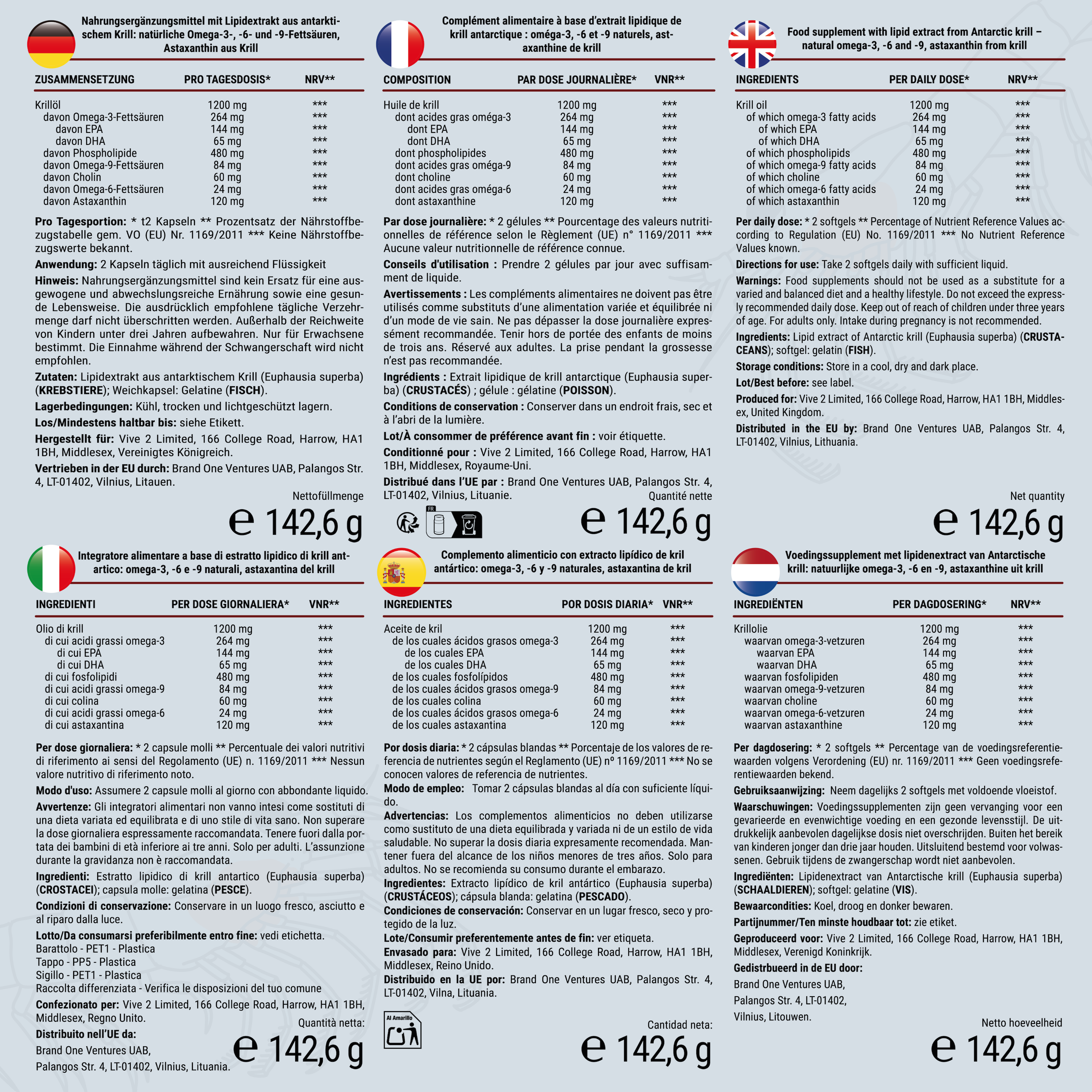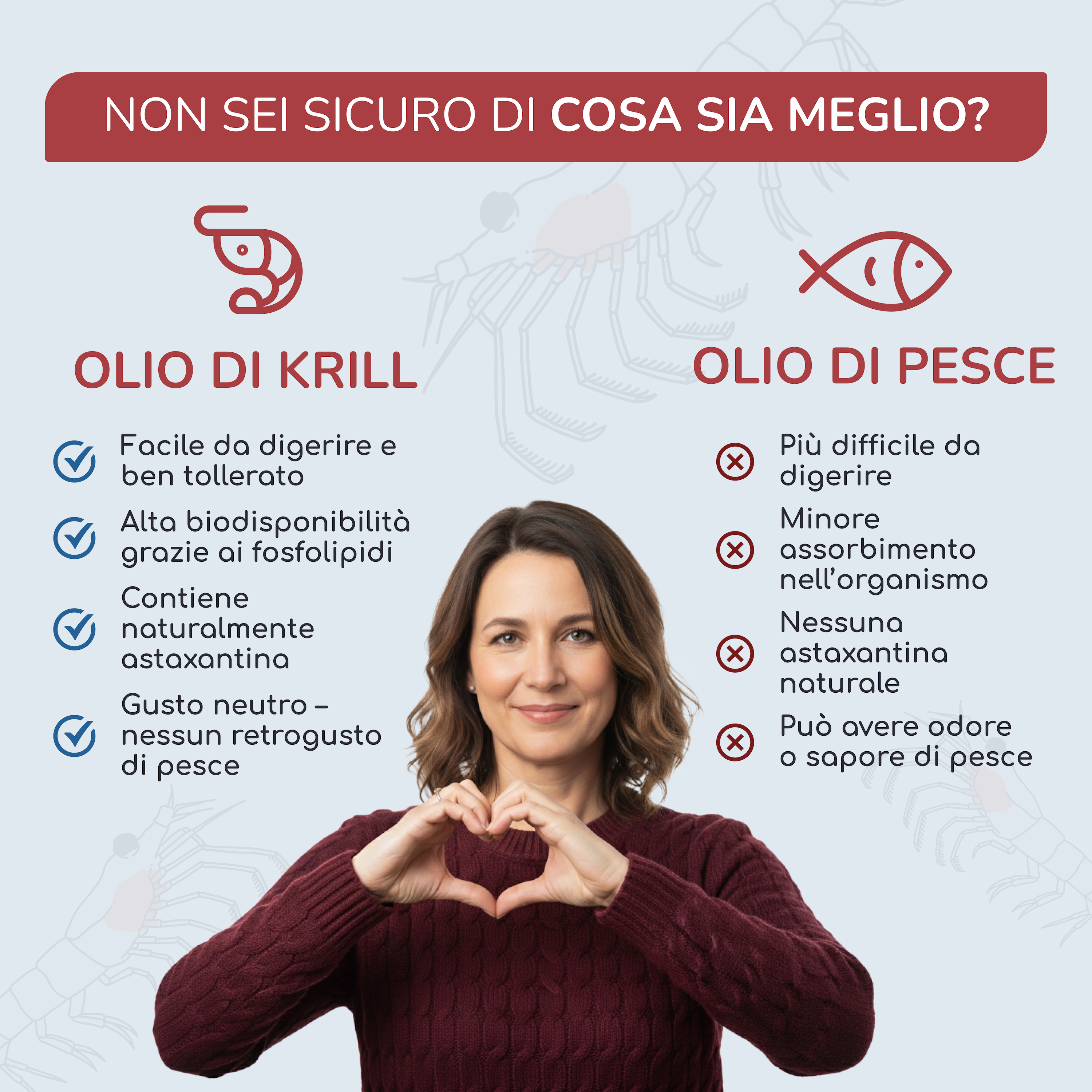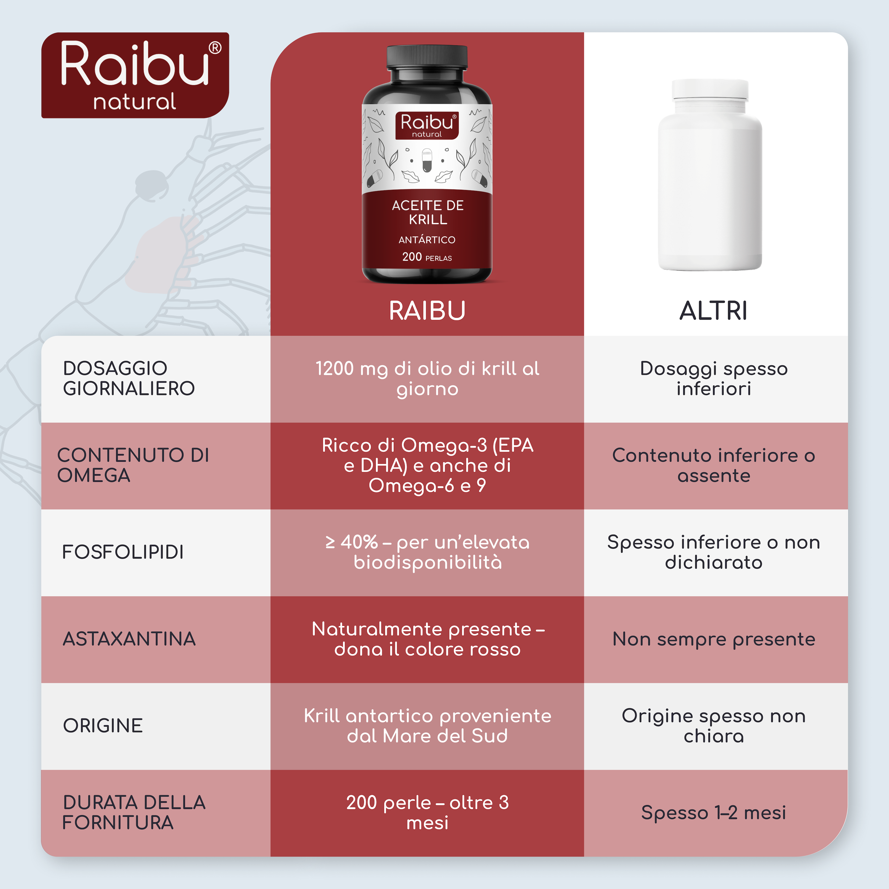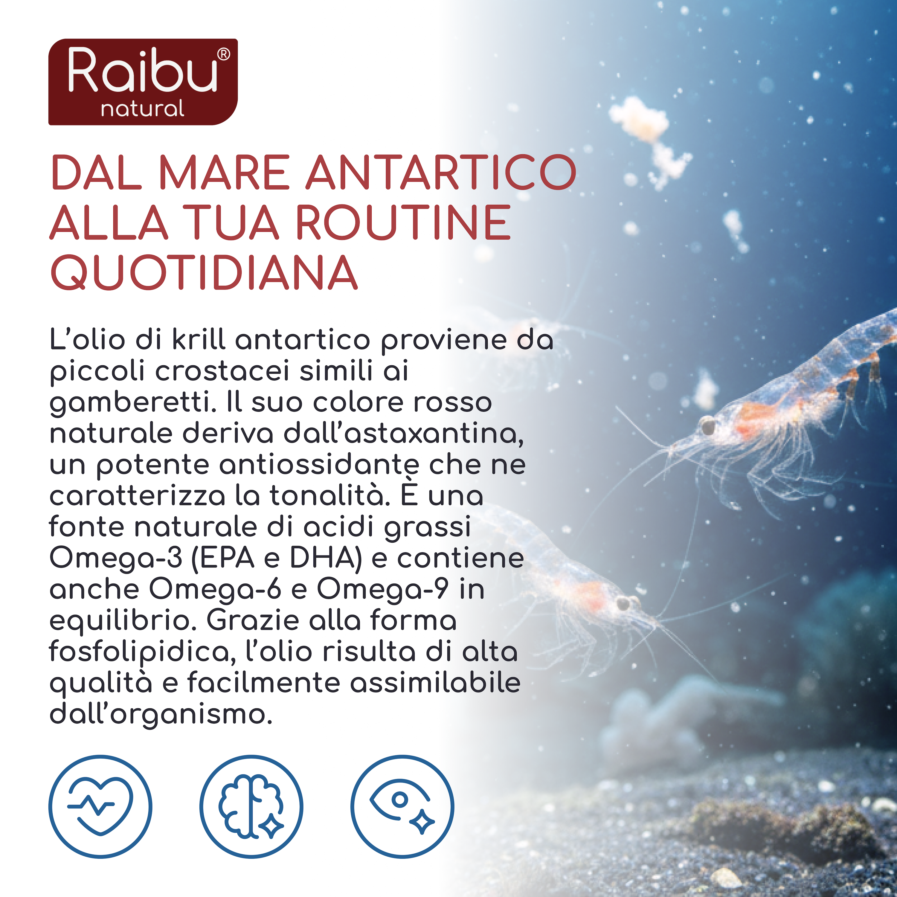 It is a pure lipid extract from Antarctic krill (Euphausia superba), naturally rich in Omega-3, Omega-6, Omega-9, phospholipids, choline, and astaxanthin.